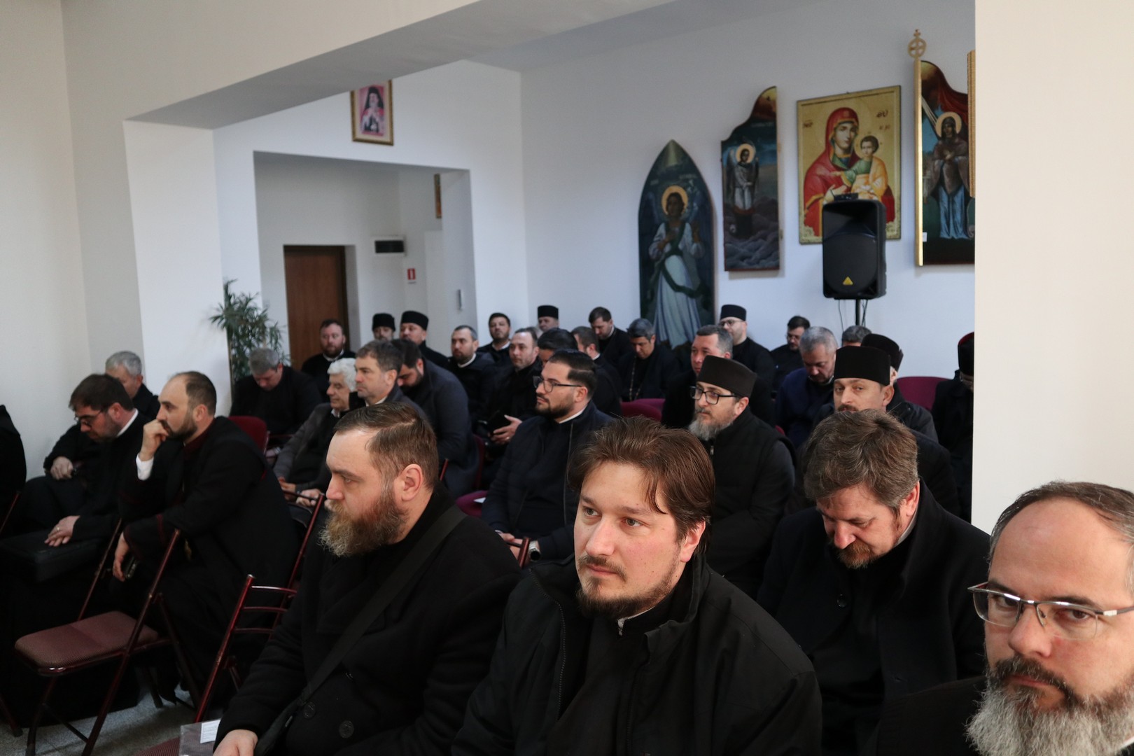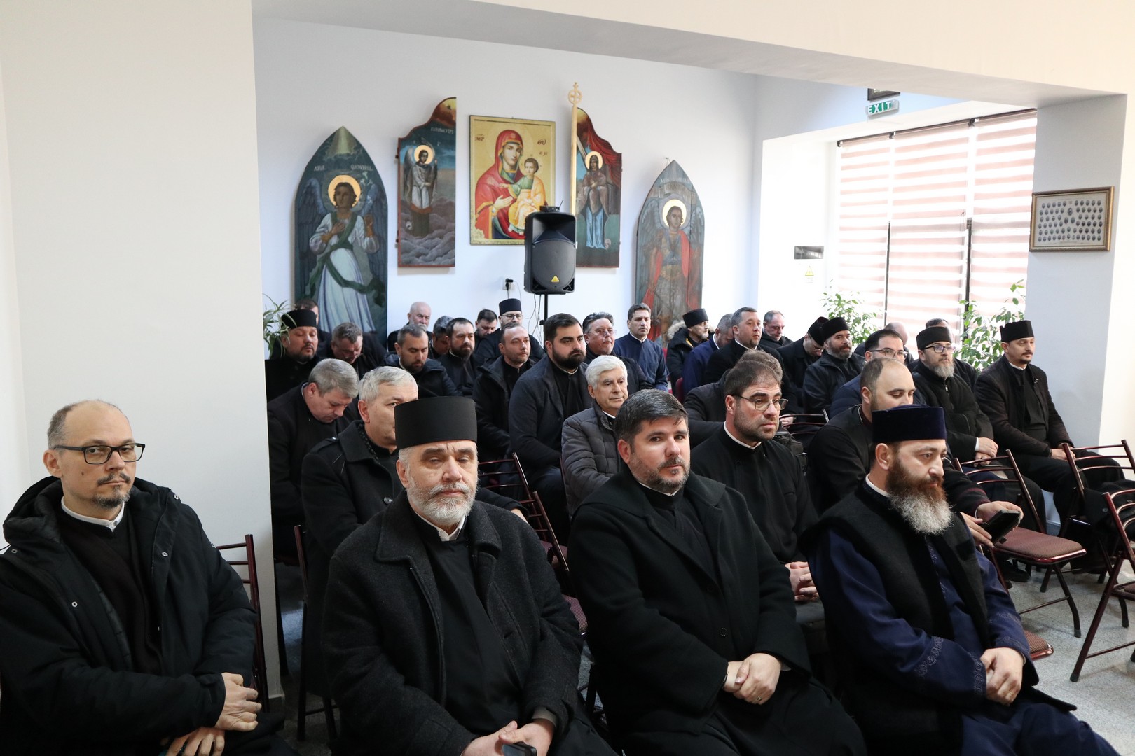 După rostirea rugăciunii, părintele Păun Gabriel, preot II la parohia Găița, a susținut referatul cu titlul „Necesitatea pregătirii preotului pentru slujirea Sfintei Liturghii”.