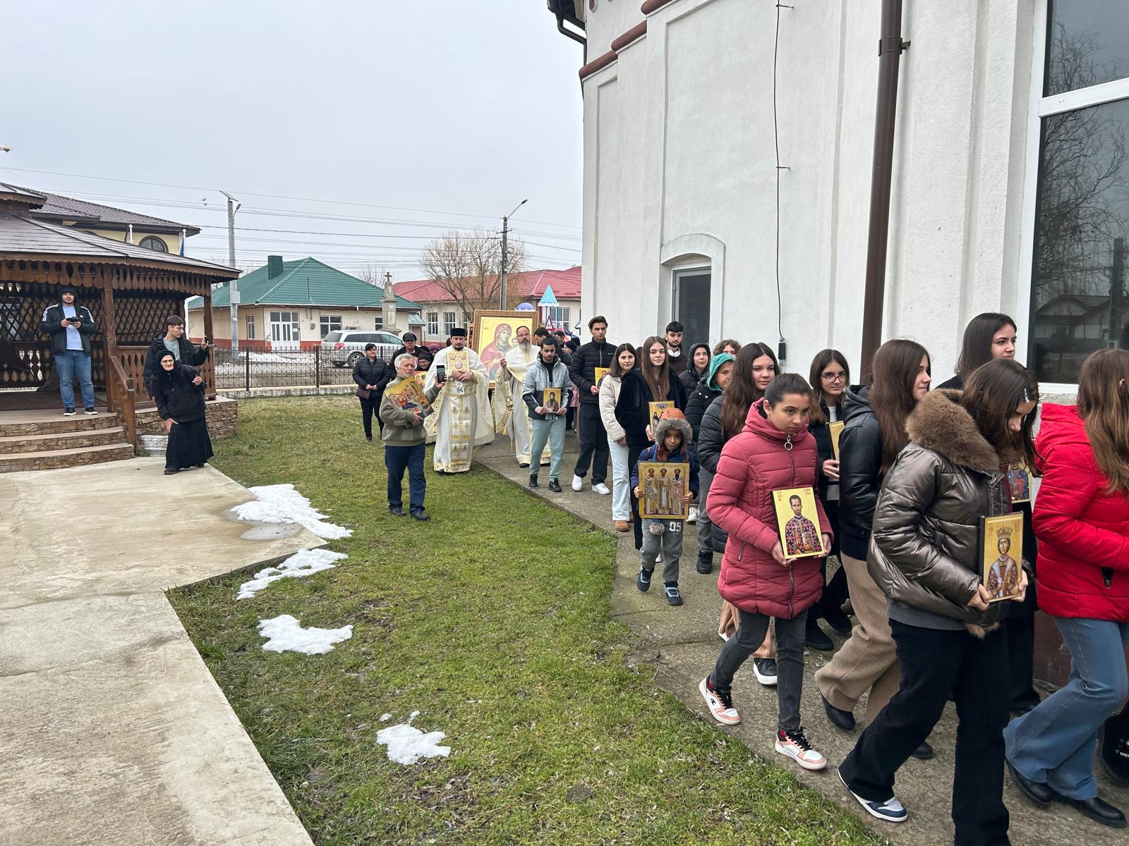 Evenimentul a debutat în curtea bisericii parohiale, iar participanții au pornit în procesiune în jurul sfântului locaș, într-o atmosferă de rugăciune și evlavie. În fruntea procesiunii s-au aflat tinerii parohiei, care au purtat icoanele celor 16 sfinte recent canonizate, oferind astfel un semn vizibil al cinstirii aduse acestor modele de credință și sfințenie.