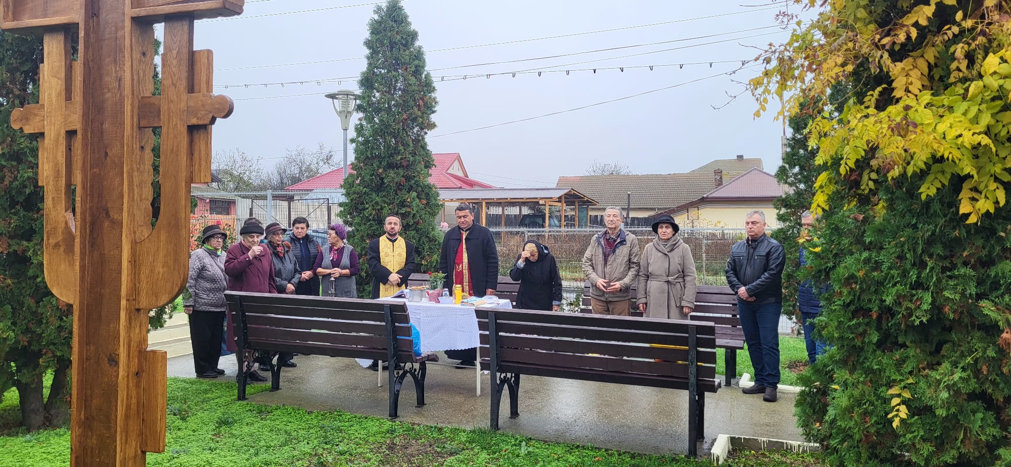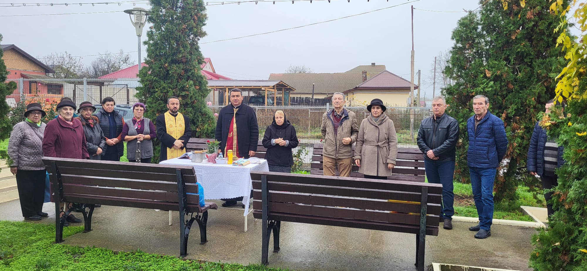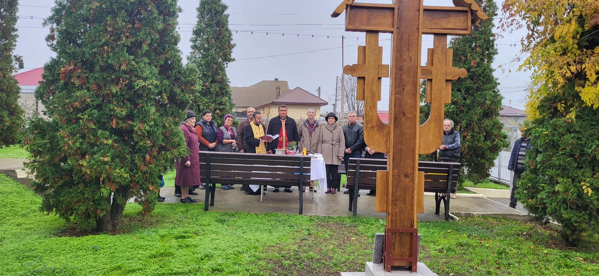 Slujitorii parohiei, preoții Brateș Alexandru și Dumitru Marius, au săvârșit slujba Aghiasmei mici și cea a sfințirii Troiței, chemând binecuvântarea lui Dumnezeu asupra celor împreună-rugători.