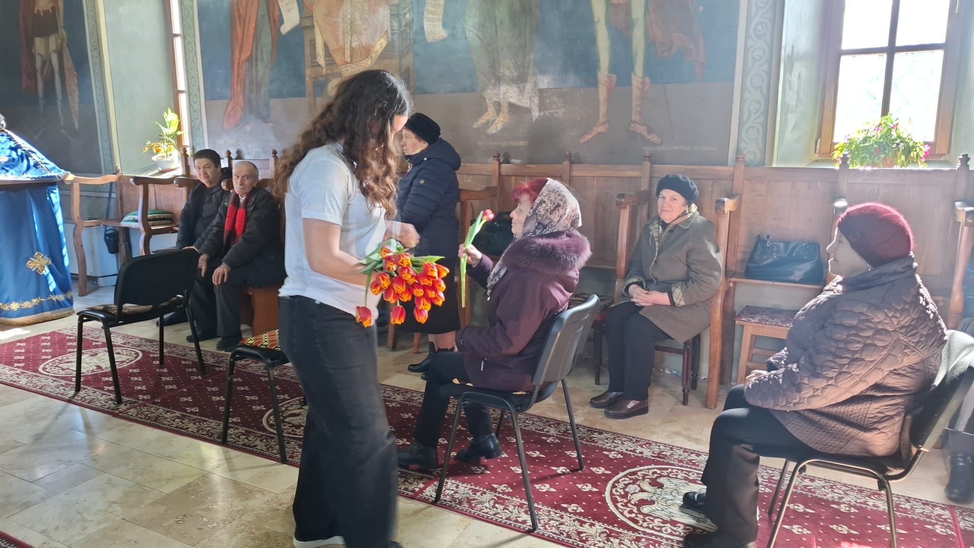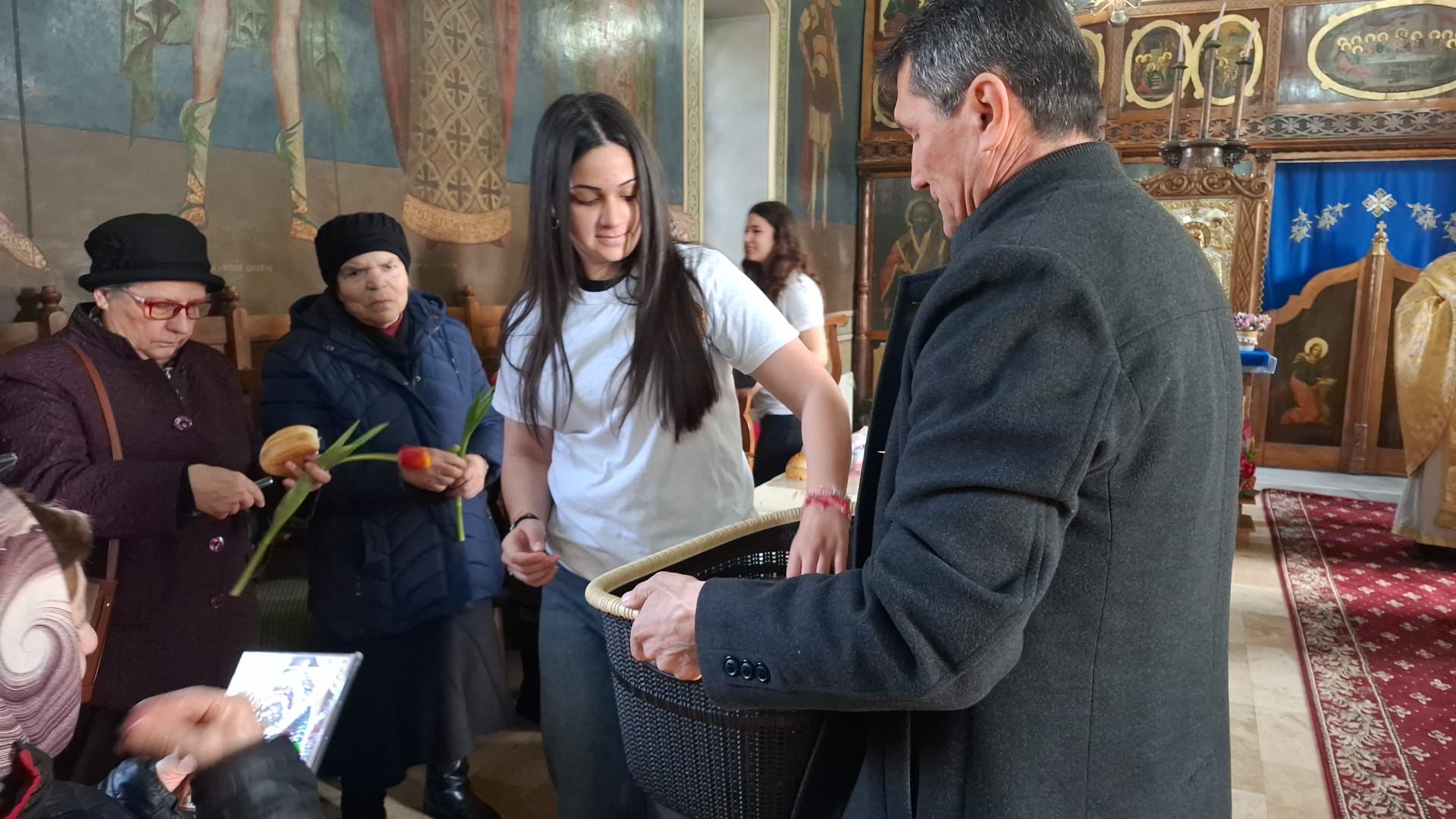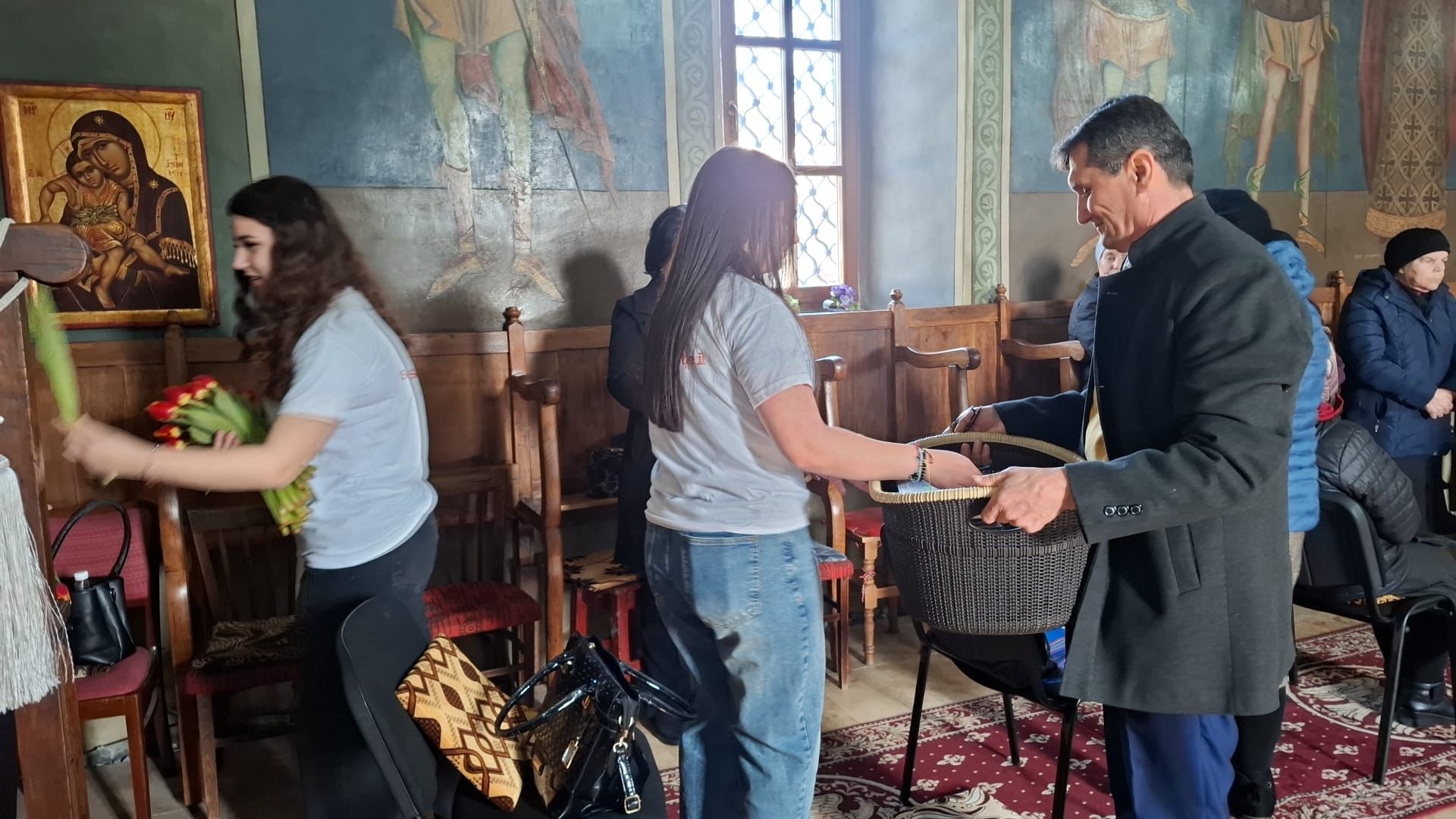 Grupul de voluntari ai parohiei au oferit tuturor doamnelor aflate în sfântul locaș o icoană a Maicii Domnului, Mama prin excelență, precum și o floare.
